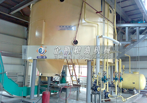 溶劑浸出:將壓榨(或膨化)后的餅粕放入油浸出器,并添加有機(jī)溶劑(如己烷等),使餅粕中的油脂溶解在溶劑內(nèi)形成混合油。通過(guò)篩網(wǎng)將固體粕末截留,得到較為潔凈的混合油。