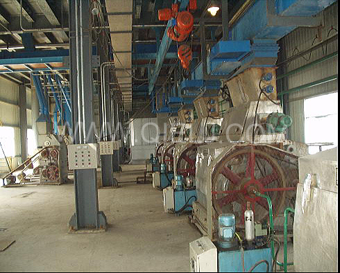 軋胚工序:采用液壓緊輥軋胚機(jī),較好的破壞油料細(xì)胞組織,以保證軋坯片薄而均勻,有韌性,粉末度小。