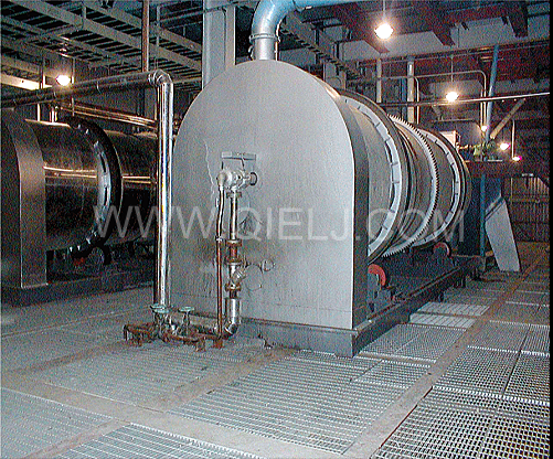 軟化工序:采用YRHW系列臥式軟化鍋,通過進(jìn)料絞龍進(jìn)入軟化轉(zhuǎn)筒內(nèi),隨著轉(zhuǎn)筒的轉(zhuǎn)動(dòng),物料得到不斷的翻動(dòng),由于轉(zhuǎn)筒內(nèi)裝有加熱列管,列管內(nèi)通有蒸汽,因此物料在隨著轉(zhuǎn)筒不斷翻動(dòng)的同時(shí),將大豆加熱到50-70℃,使其充分軟化,提高大豆原料的塑性,使軋胚機(jī)軋出的胚薄而不碎,從而提高浸出效果。轉(zhuǎn)筒帶有進(jìn)料端高、出料端低的傾角,根據(jù)物料的軟化情況,通過調(diào)速裝置調(diào)節(jié)轉(zhuǎn)筒的轉(zhuǎn)速,可以控制物料在轉(zhuǎn)筒內(nèi)的軟化時(shí)間,使物料的軟化效果達(dá)到理想狀態(tài)。